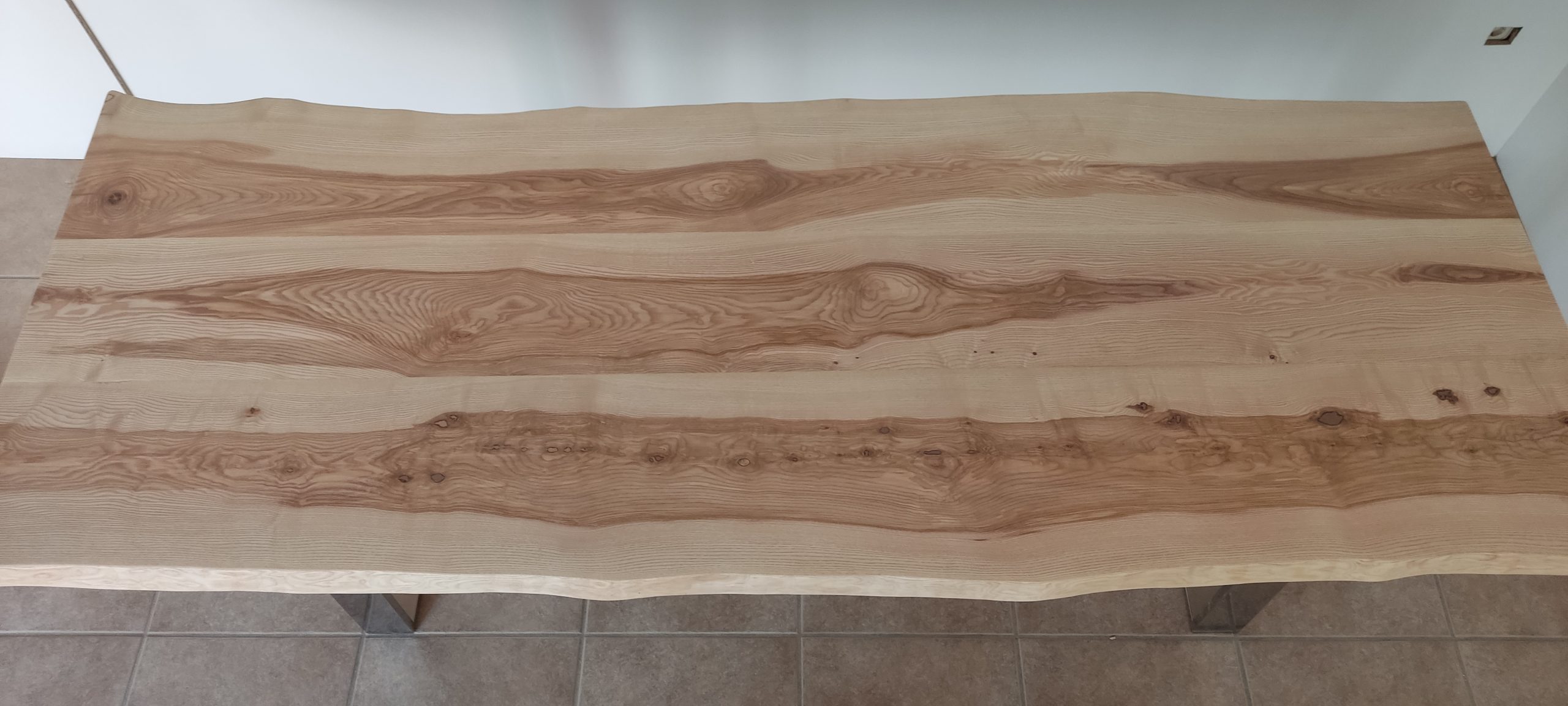 El fresno es un pariente del rroble pero de color mas claro , es una de las maderas mas duras que existen, si bien no da mucho ancho , por tanto hay que unir 2 o 3 piezas, grueso entre 4.5 y 5.5 cm